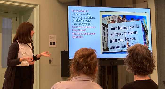 Kristina Bogner lead us on a journey through provocations around the role of emotions, highlighting the importance of sociocultural and political forces influencing of emotions (and vice versa) - she highlighted to trust our emotions, but to not trust how we feel (given that they are shaped by injustices and power dynamics).